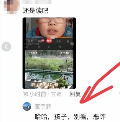 董宇辉看到后在评论区回复了网友的一条评论:孩子,别看,恶评。