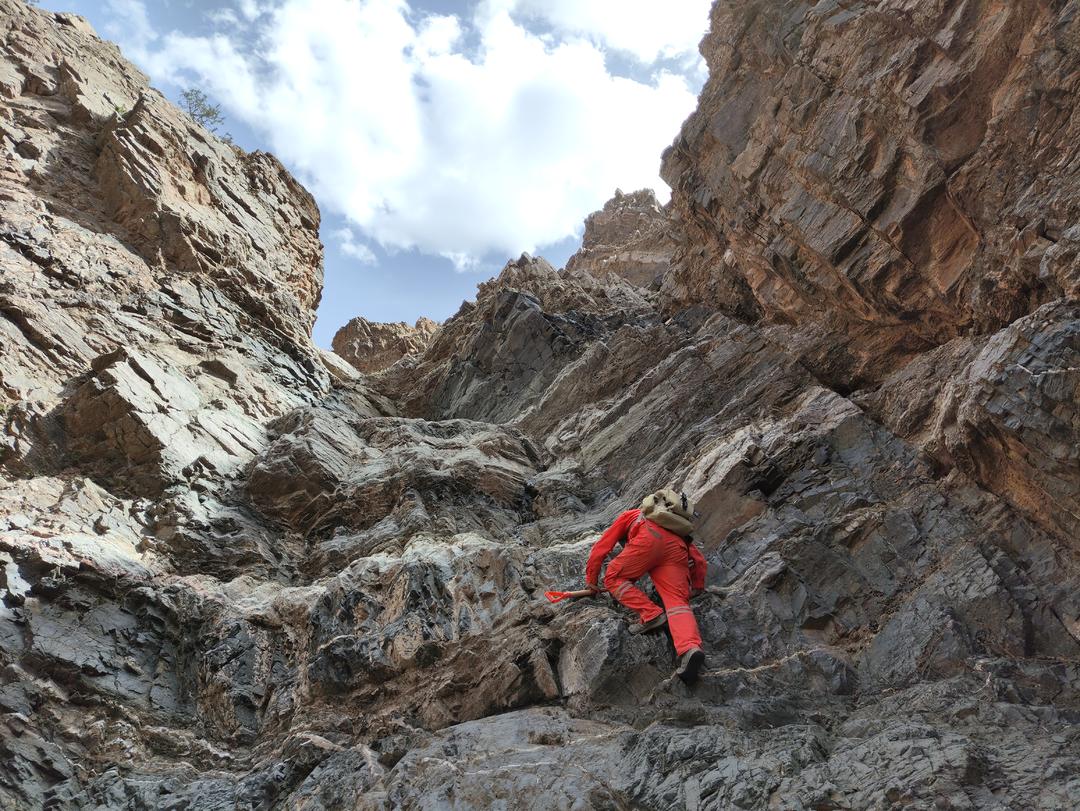 年过55岁的杨学生,既是七队哈密项目组负责人,也是去年刚毕业的00后研究生刘鹏震的“师傅”。杨学生不仅自己冲锋在前,更将30余载积累的野外经验倾囊相授给年轻地质队员们。从如何精准观察露头、辨识矿物特征,到在复杂地形下安全高效作业、室内资料整理,他手把手指导、面对面传授,像一位默默耕耘的守护者,把自己的智慧与心血毫无保留地传递给青年一代。