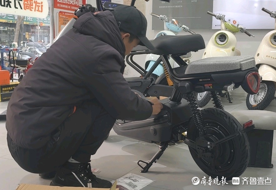 “现在我们店里共有四款‘新国标’电动自行车,适合不同年龄段不同需求的消费者选购。”历下区东关大街某品牌电动自行车门店内,店员正在为几辆新车安装电池。